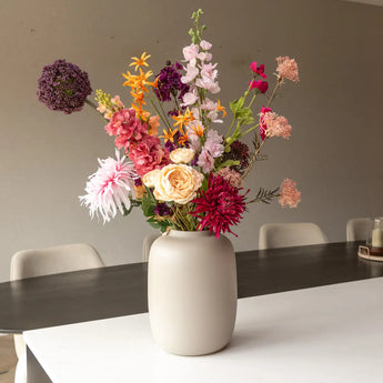 Ontdek vrijblijvend welk zijden bloemen arrangement bij jouw onderneming past. Van een boeket tot een set die bij jouw vestiging past.