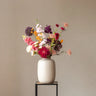 Breng warmte, kleur en gezelligheid in huis met dit luxe zijden boeket. Het boeket komt mooi naar voren in de neutrale vaas met een matte look. Een stijlvolle blikvanger die perfect past in elk interieur. Het ideale boeket voor wie houdt van een frisse, luxe uitstraling, zonder het onderhoud van echte bloemen.